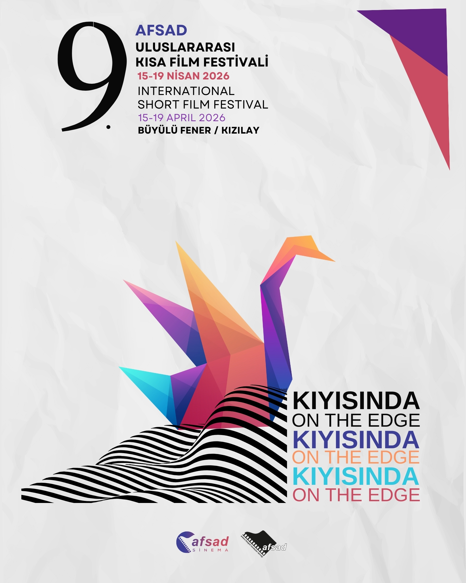 Ankara Fotoğraf Sanatçıları Derneği (AFSAD) tarafından 15-19 Nisan 2026 tarihlerinde dokuzuncu kez düzenlenmekte olan Uluslararası Kısa Film Festivali bu sene, Büyülüfener Sinemalarında gerçekleştiriliyor. Tüm dünyadan kısa filmlerin başvurabileceği 9. Uluslararası Kısa Film Yarışması’nın bu yılki teması “Kıyısında”.
