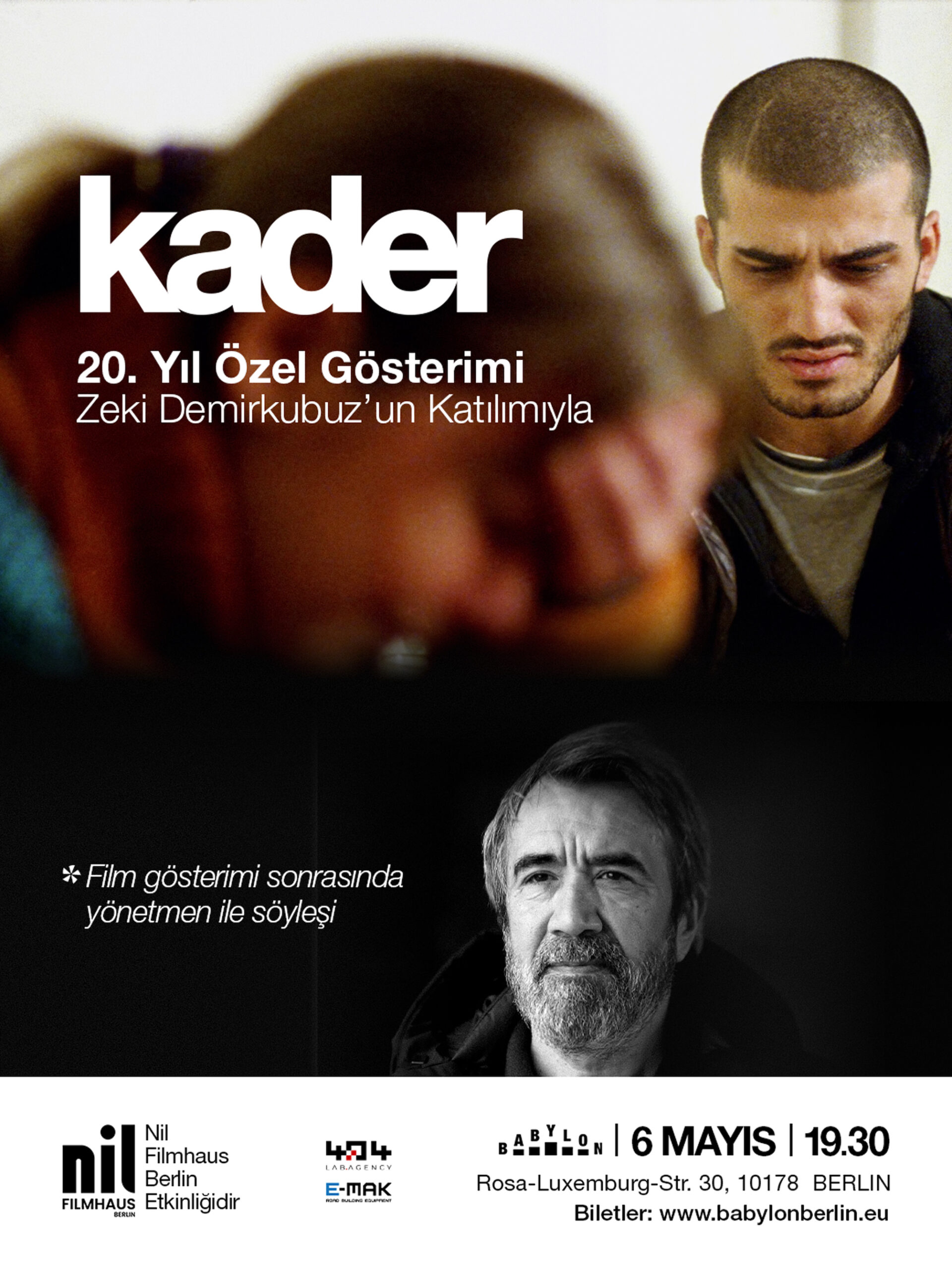 2006 yılında vizyona girdiğinde derin bir yankı uyandıran ve Türk sinemasının en güçlü dramlarından biri olarak perçinlenen Kader, 20 yılın ardından Nil Filmhaus etkinliği olarak Berlin’in kalbinde, Zeki Demirkubuz’un katılımıyla yeniden beyazperdede gösterilecek.